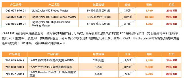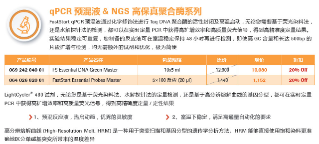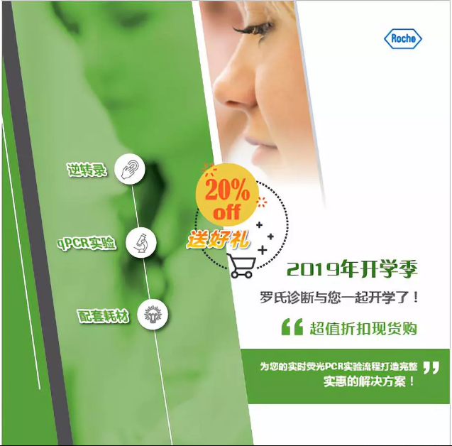 2019年开学季,罗氏诊断来助力——超值折扣现货购。罗氏诊断qPCR试剂及耗材促销活动火热开启,为你的实时荧光PCR流程打造完整实惠的解决方案。可帮你在实时定量PCR中获得高扩增效率和高质量荧光信号,还保证结果精确度高,为你的实时荧光PCR流程打造完整实惠的解决方案。机不可失,时不再来,速速来抢购吧。