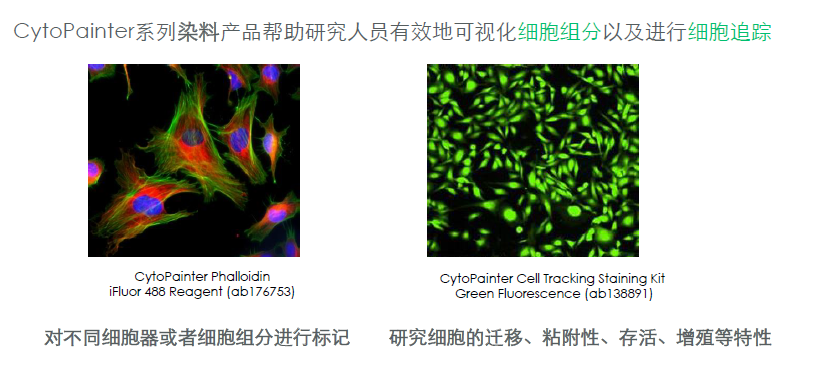 目前Abcam可以提供很多用于细胞亚结构的Cytopainter荧光染色试剂盒,常用的一些细胞器染色试剂盒汇总如下: