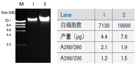 MagNA Pure 24系统分离得到超过23 kb的单链,结果表明核酸纯度高、完整性好,当样本浓度增加时,线性表现亦良好。