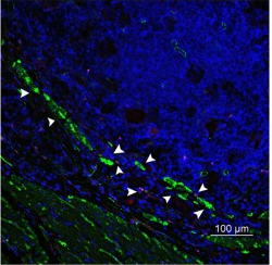 如上图的所示,胃平滑肌层阳性信号明显,黏膜层无阳性信号,证明抗体得到的信号是敏感且特异的(Alpha-SMA,货号 NBP2-33006)。